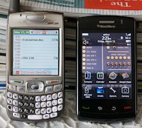 Last fall, Alex warned me that Apple was dropping their support for the Palm Treo. I couldn’t upgrade to Spotted Lynx, or whatever the latest OS-X is called, until I switched phones. While I had been hoping to hold out for a Verizon iPhone, my patience ended a couple of weeks ago. After a weekend with a Droid, and a brief flirtation with the Palm Pre Plus, I settled on the Blackberry Storm II.