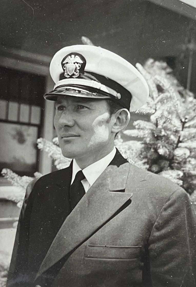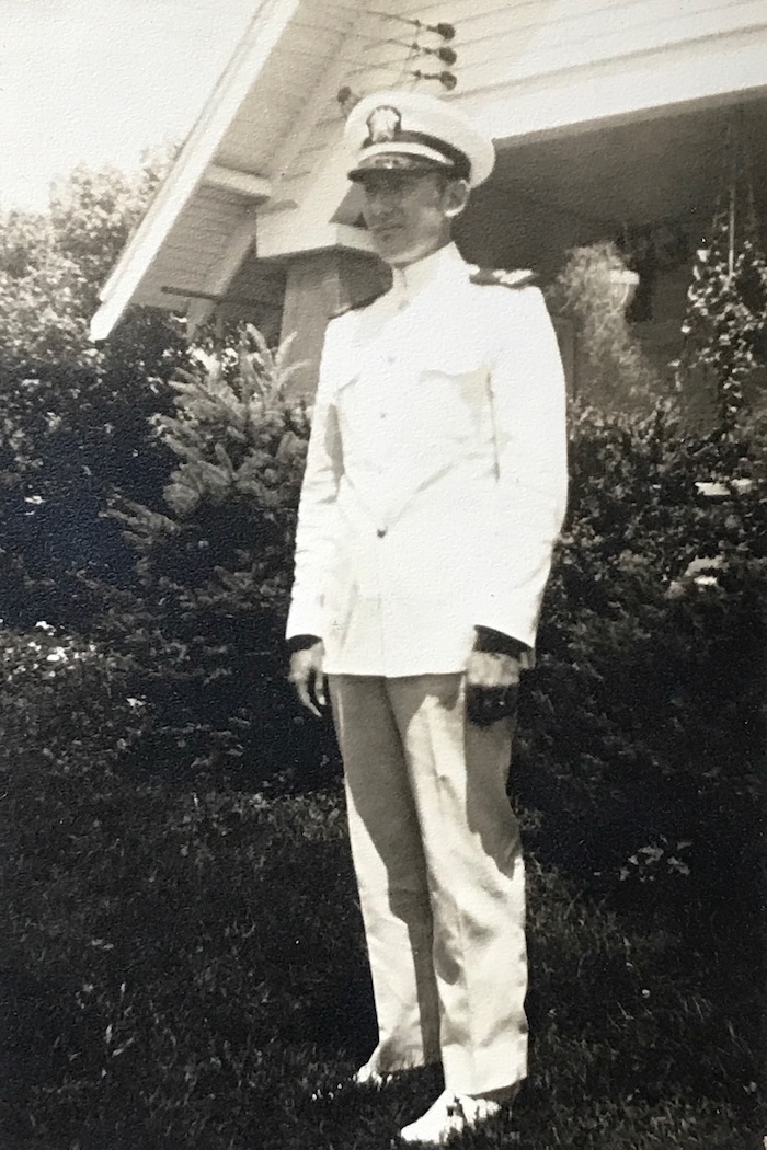 Dad was awarded two military ribbons, the World War II victory medal, and one for service in the “American Theater.” After the war ended, he was demobilized in 1946. He stayed in the reserves and was promoted to Commander in 1953.